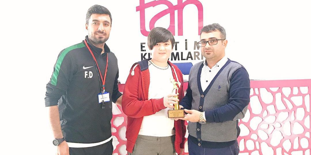 Tan Yıldırım Koleji’nde Düzenlenen Masa Tenisi turnuvasında 5. ve 6. Sınıflar Şampiyonu olan Erinç İlbay’a şampiyonluk kupası sayın müdürümüz Halil Ülker tarafından verilerek başarılarının devamını dilenmiştir